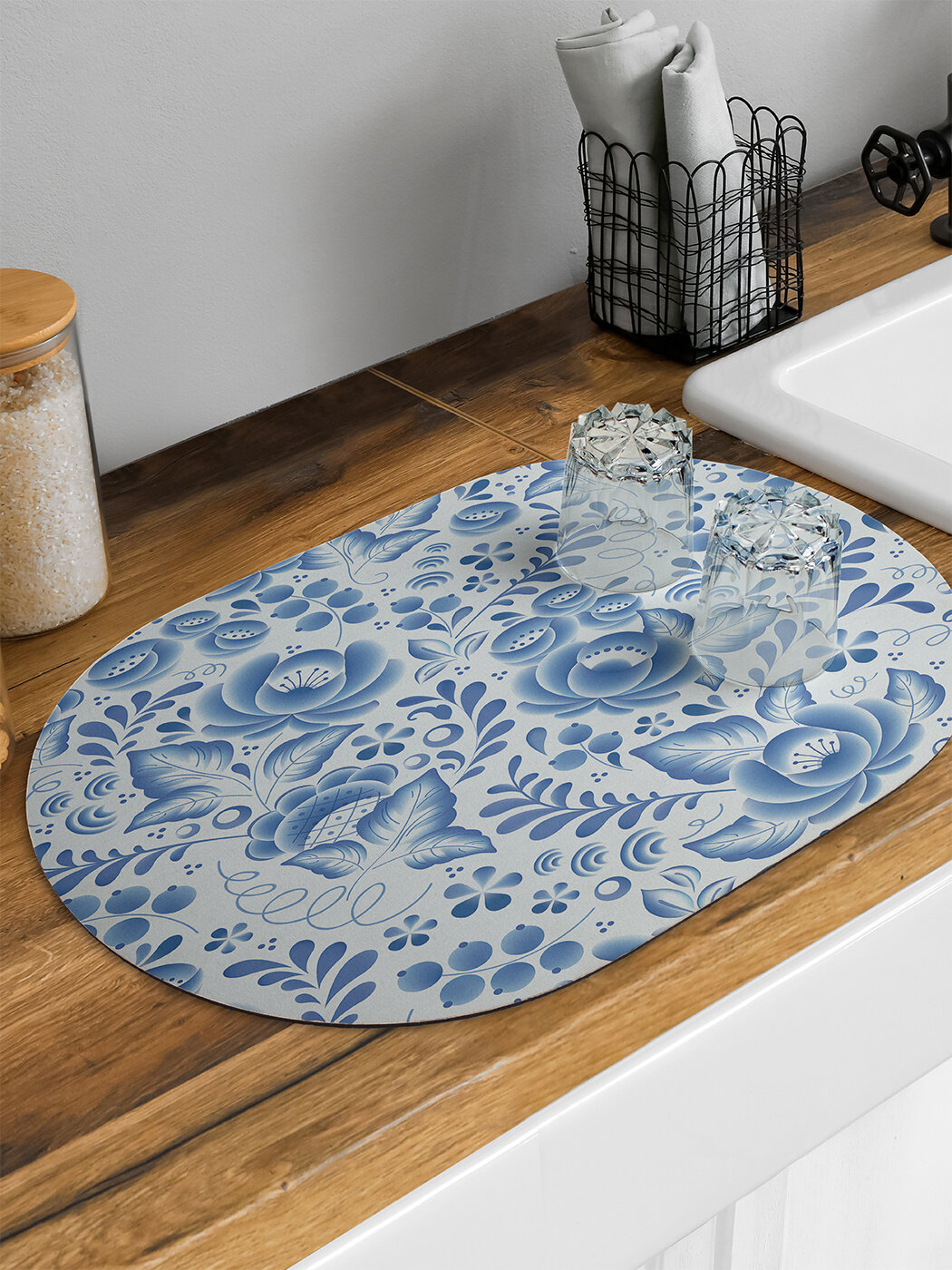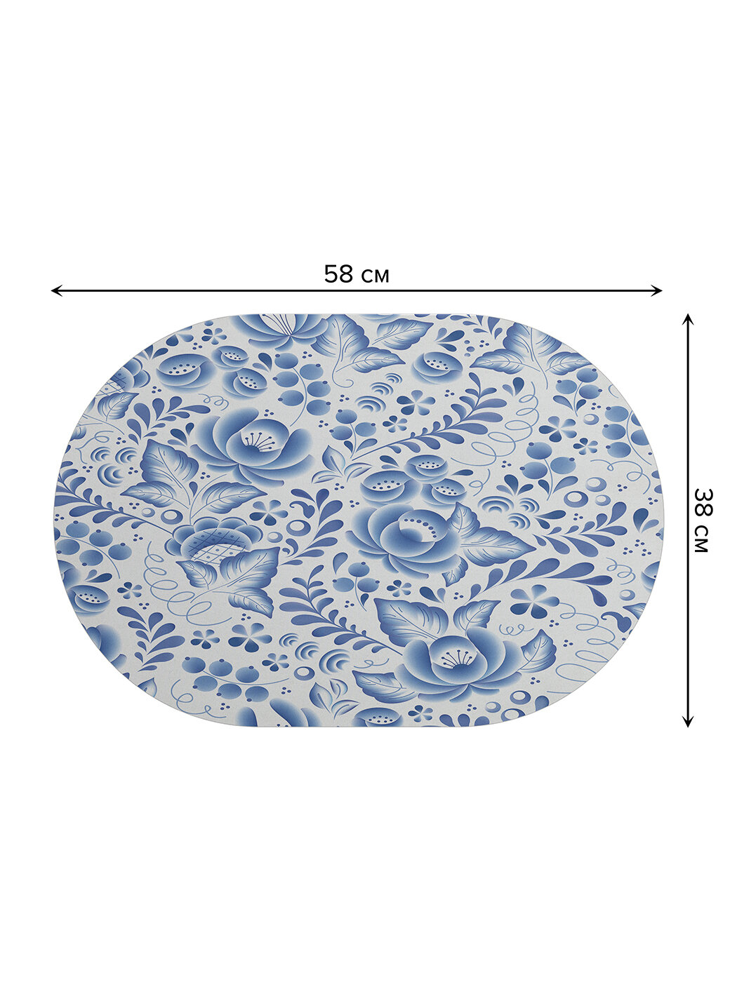 Коврик для сушки посуды впитывающий для кухни JoyArty "Керамическая гжель" овальный 58x38 см информация:
