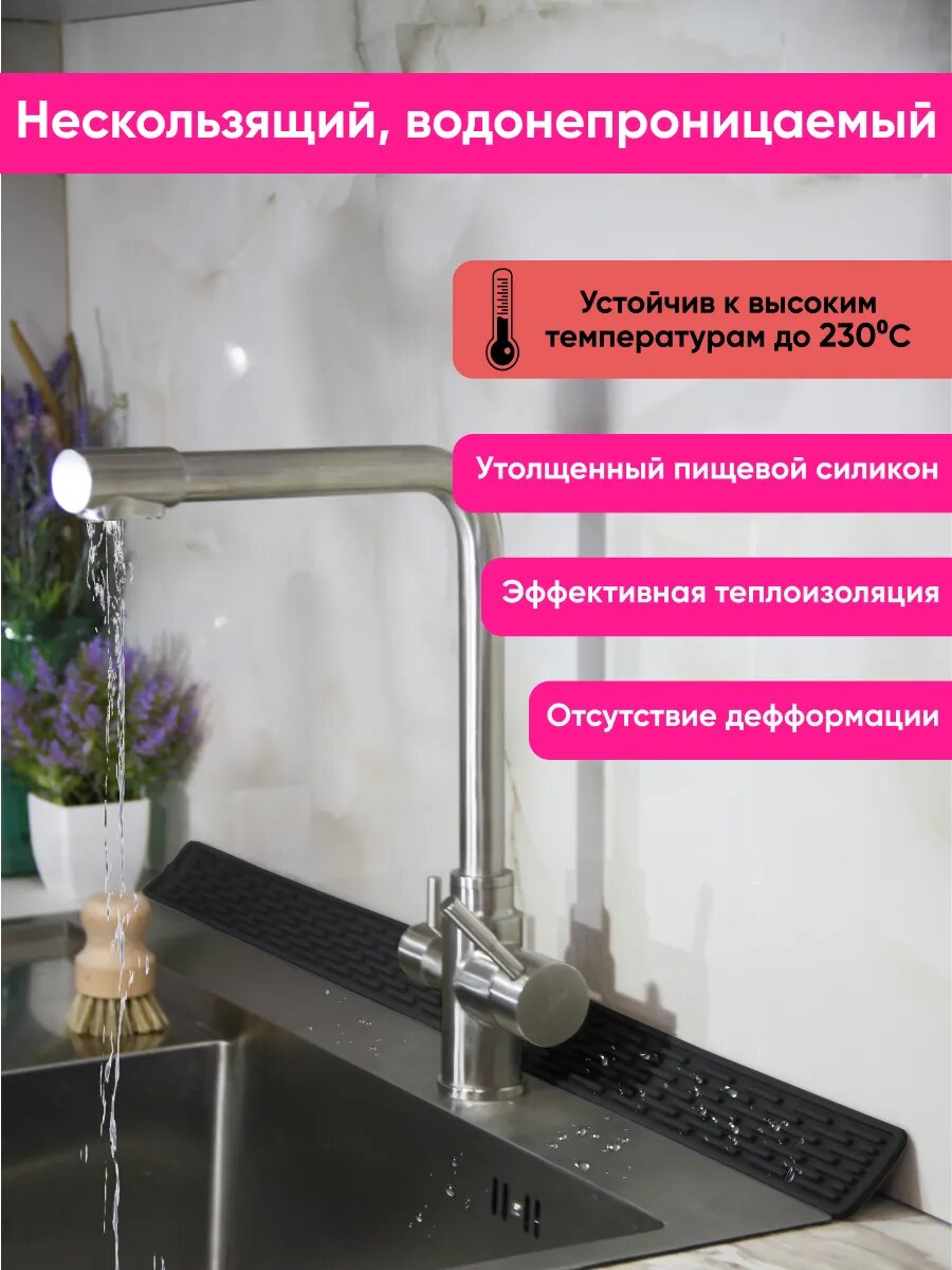 Отзывы на Коврик для раковины на кухню, силиконовый, от брызг 50х5,5х0,5 см, черный