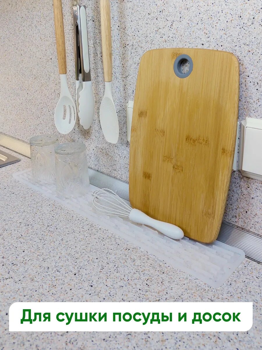 Коврик для раковины силиконовый от брызг, для разделочных досок, для сушки посуды, 70х10х0,5 см белый 820 ₽
