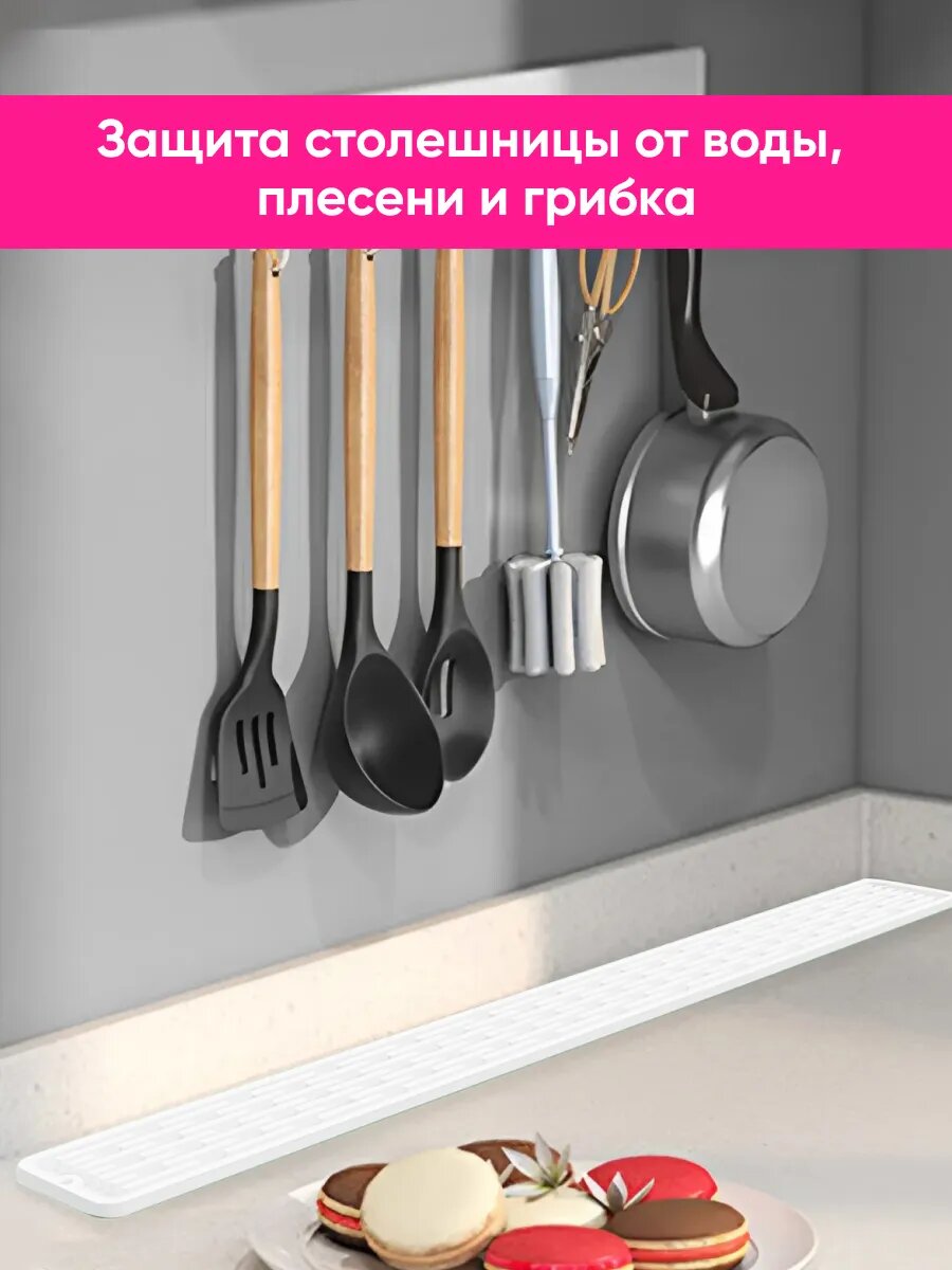 Коврик для раковины на кухне силиконовый, от брызг на столешницу, для сушки посуды, 55х8,8х0,5 см, белый 560 ₽