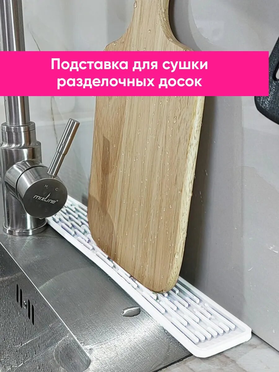 Коврик для раковины силиконовый от брызг, для разделочных досок, для сушки посуды, 70х10х0,5 см белый 820 ₽