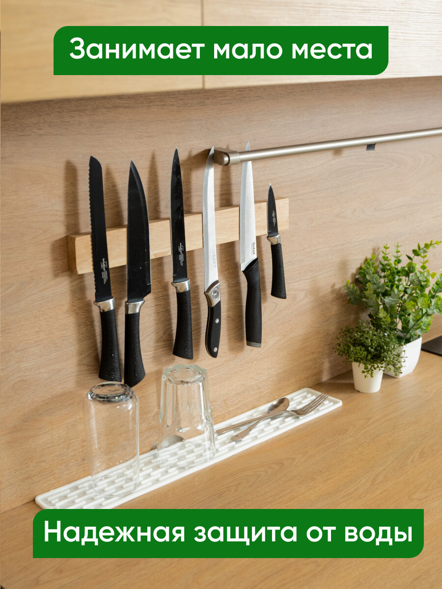 10 цен на Коврик для раковины на кухне силиконовый, от брызг на столешницу, для сушки посуды, 55х8,8х0,5 см, белый