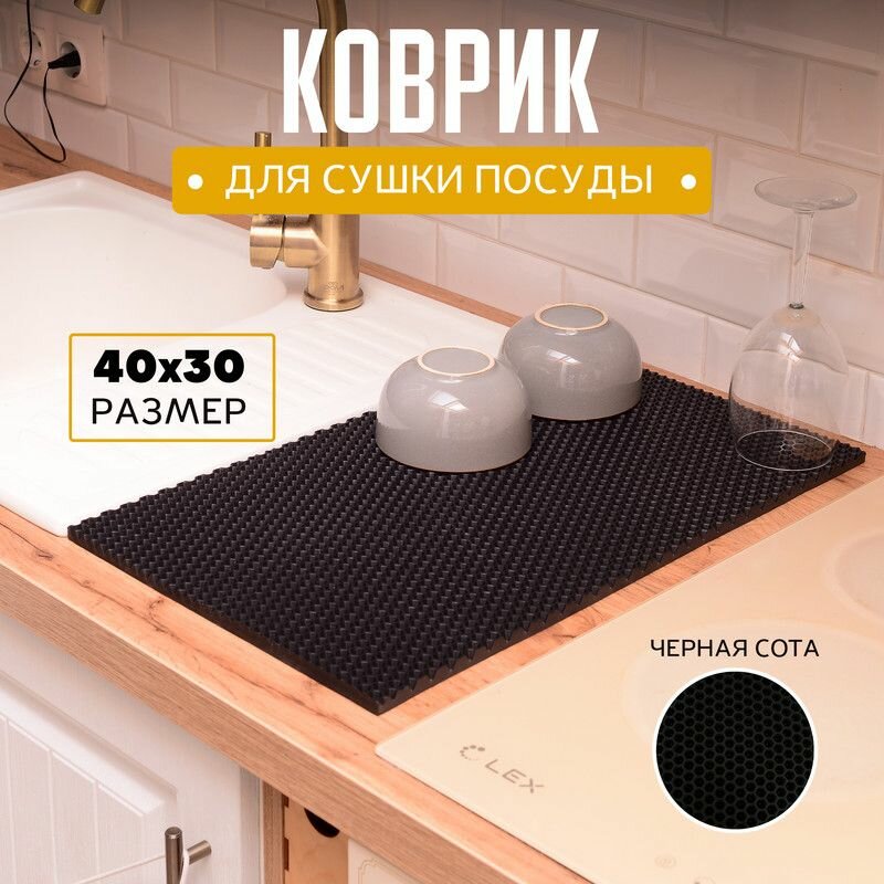 10 цен на Коврик для сушки посуды эва, EVA 40х30х1см черная сота, барный