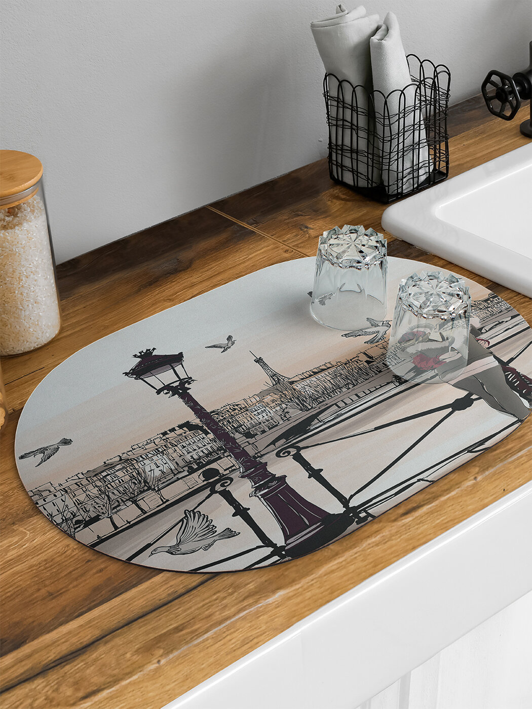 Коврик для сушки посуды впитывающий для кухни JoyArty "Романтика на набережной" овальный 58x38 см информация: