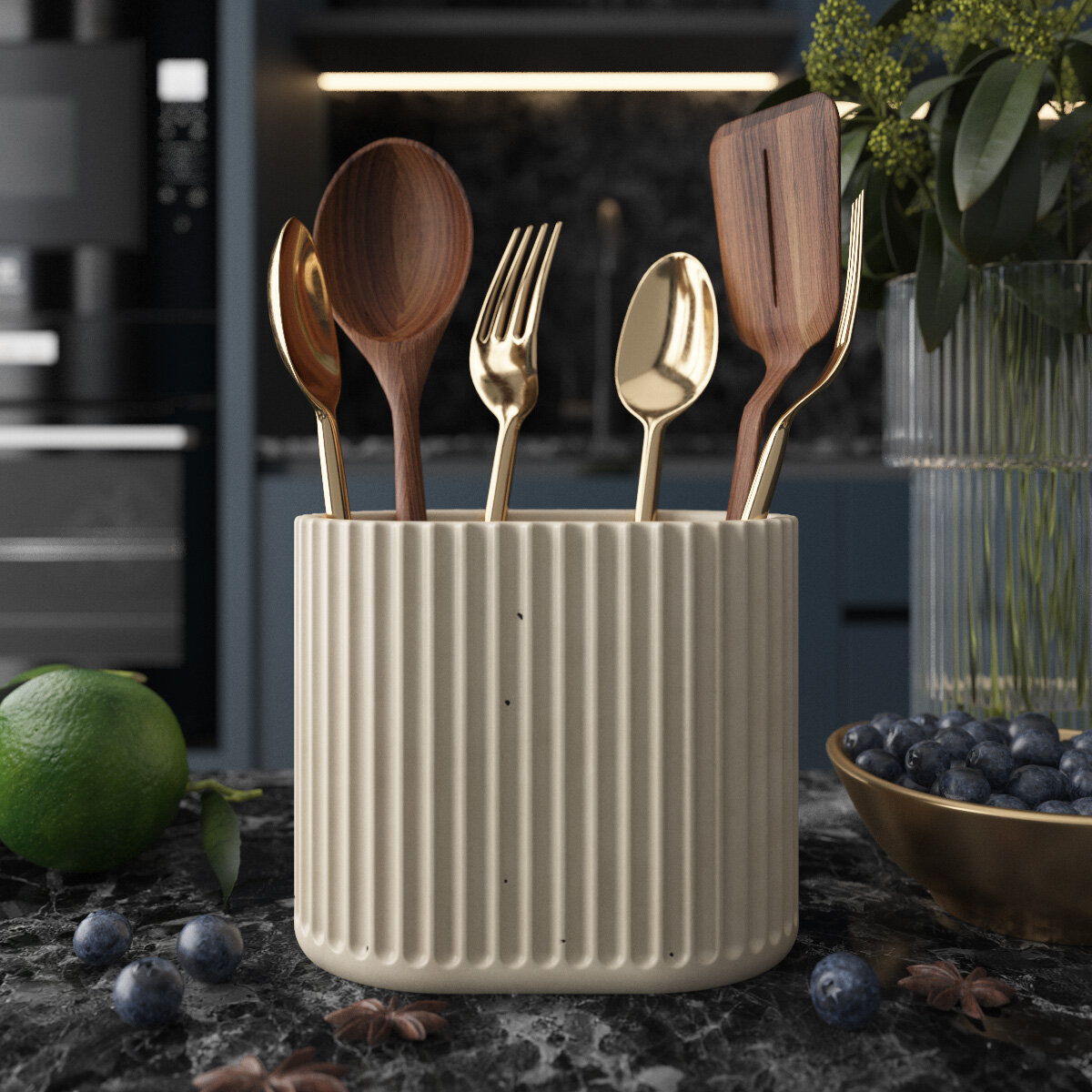 Отзывы на Кухонный стакан Chloe Duo, подставка для столовых приборов, 10х13х8.5 см, бетон, бежевый глянцевый
