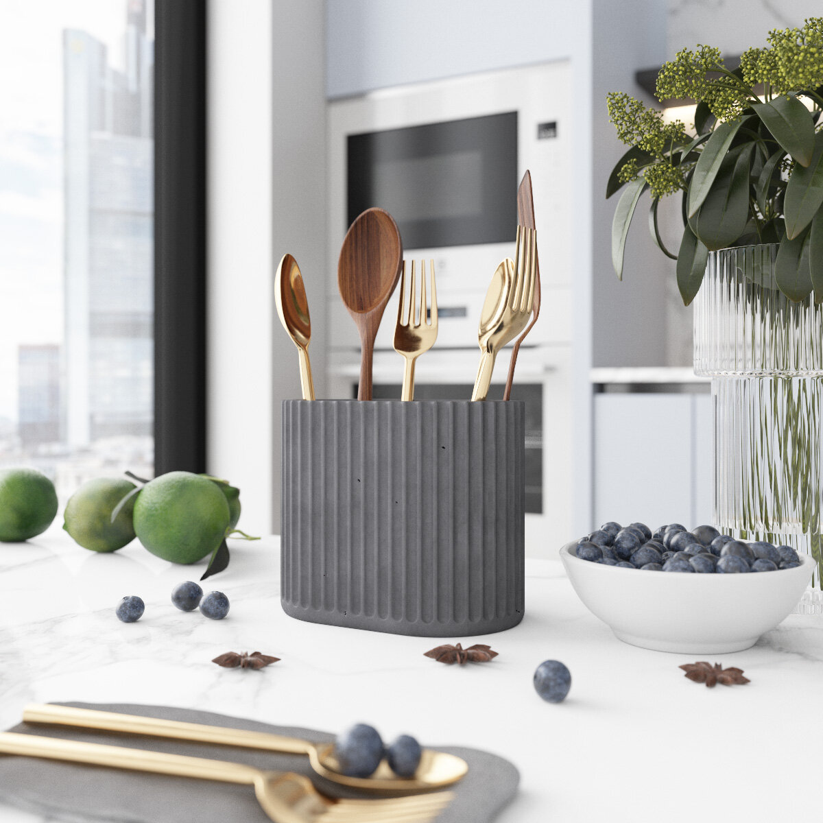 Отзывы на Кухонный стакан Chloe Duo, подставка для столовых приборов, 10х13х8.5 см, бетон, черный матовый