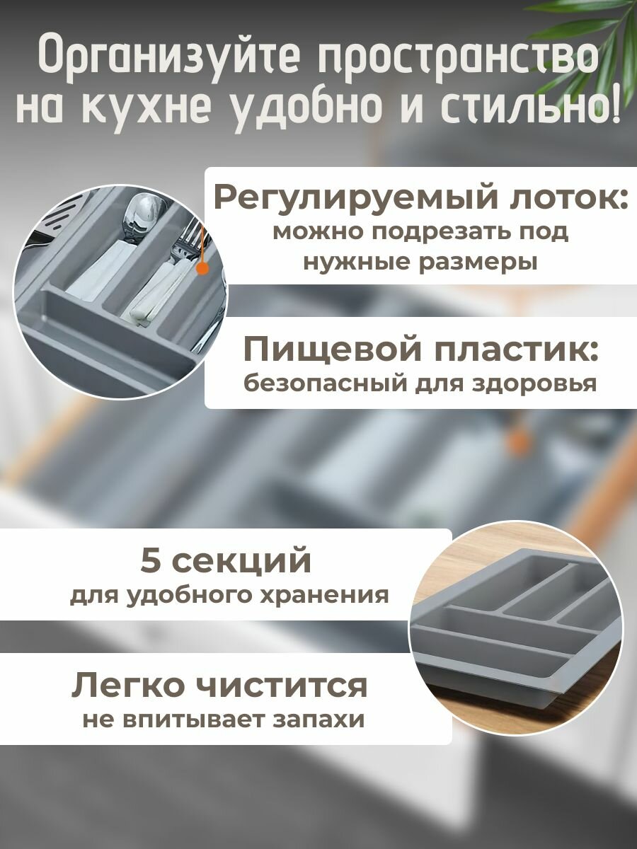Лоток для столовых приборов TRAYBOND MESAN 292х480мм, 5 секций, серый информация: