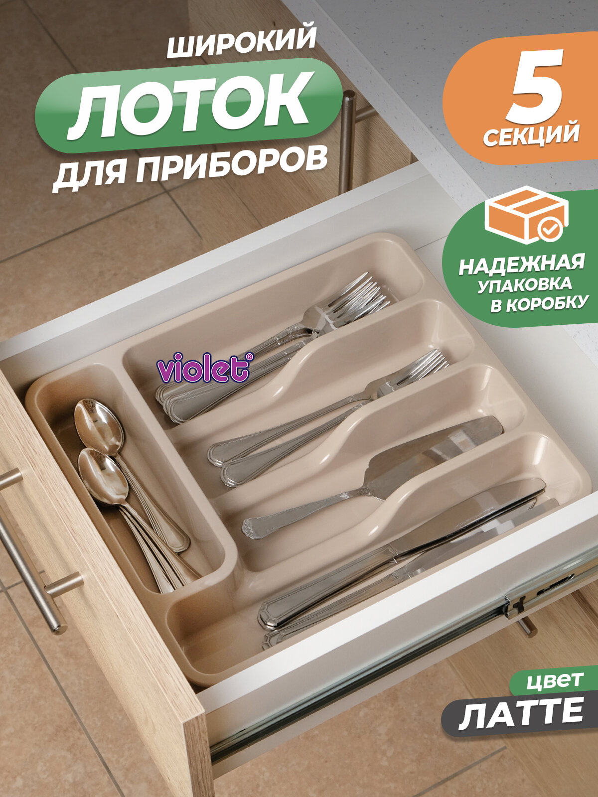 Отзывы на Лоток для столовых приборов Violet широкий, цвет латте / подставка для хранения ложек и вилок в ящике стола