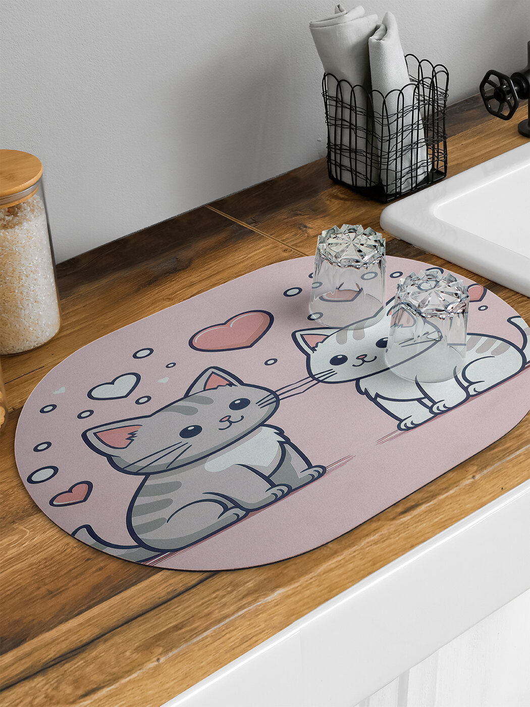 Отзывы на Коврик овальный для сушки посуды "Котики ждут любовь " 58x38, JoyArty