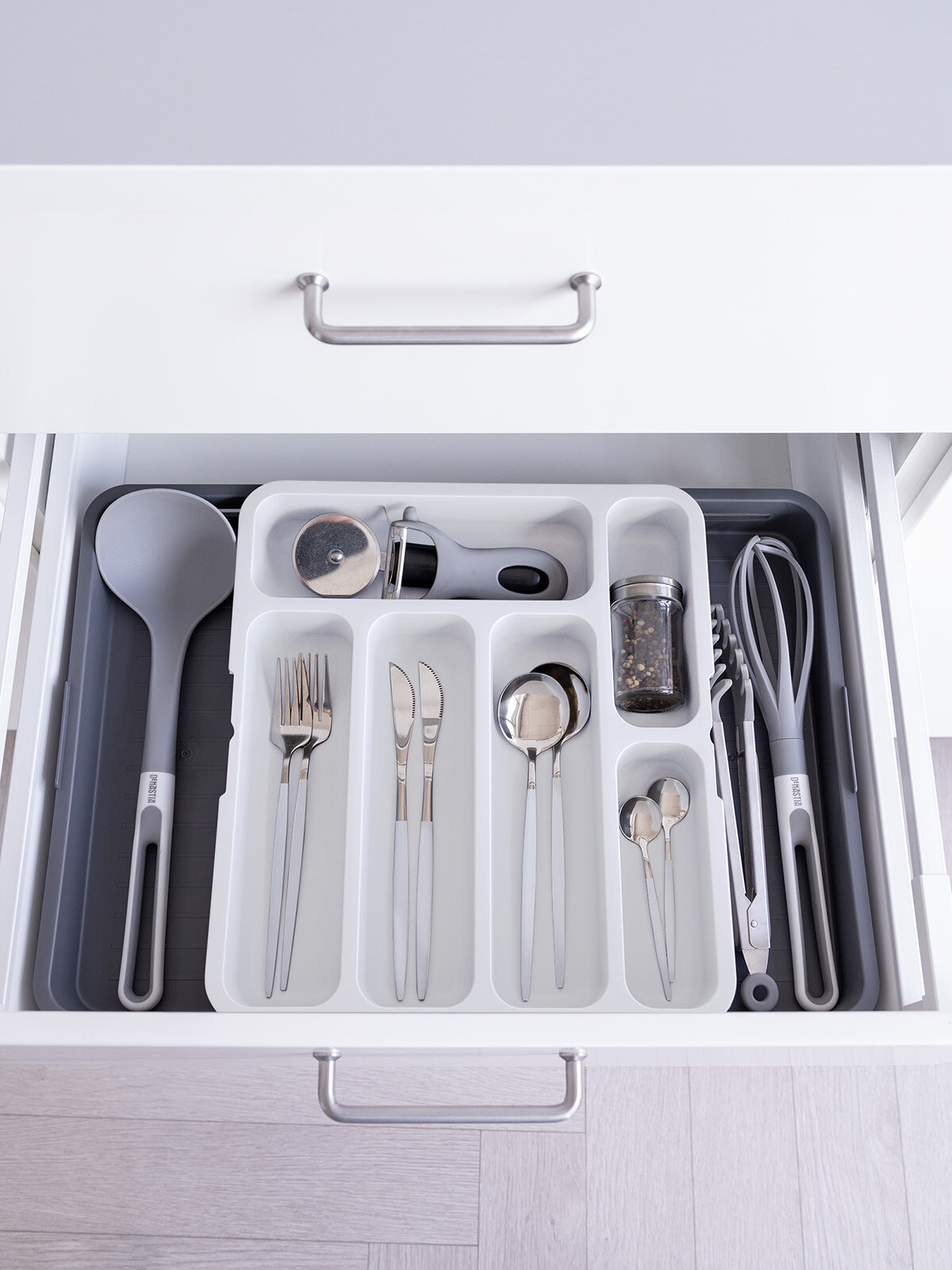 10 цен на Органайзер (лоток) для столовых приборов DeNASTIA раздвижной, 31 x 35 x 5,5см, цвет белый