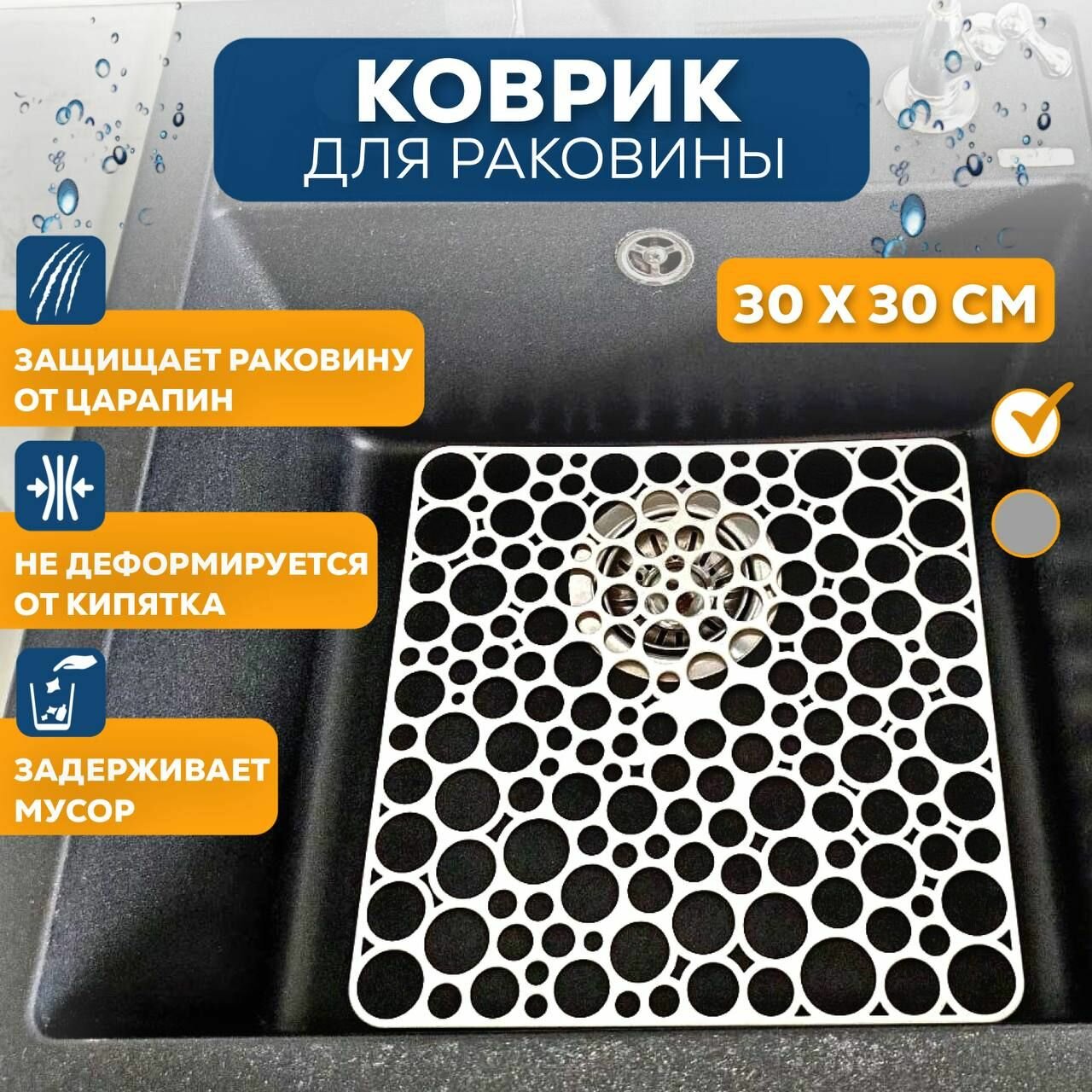 Решетка в раковину ; коврик для мойки 30х30см информация: