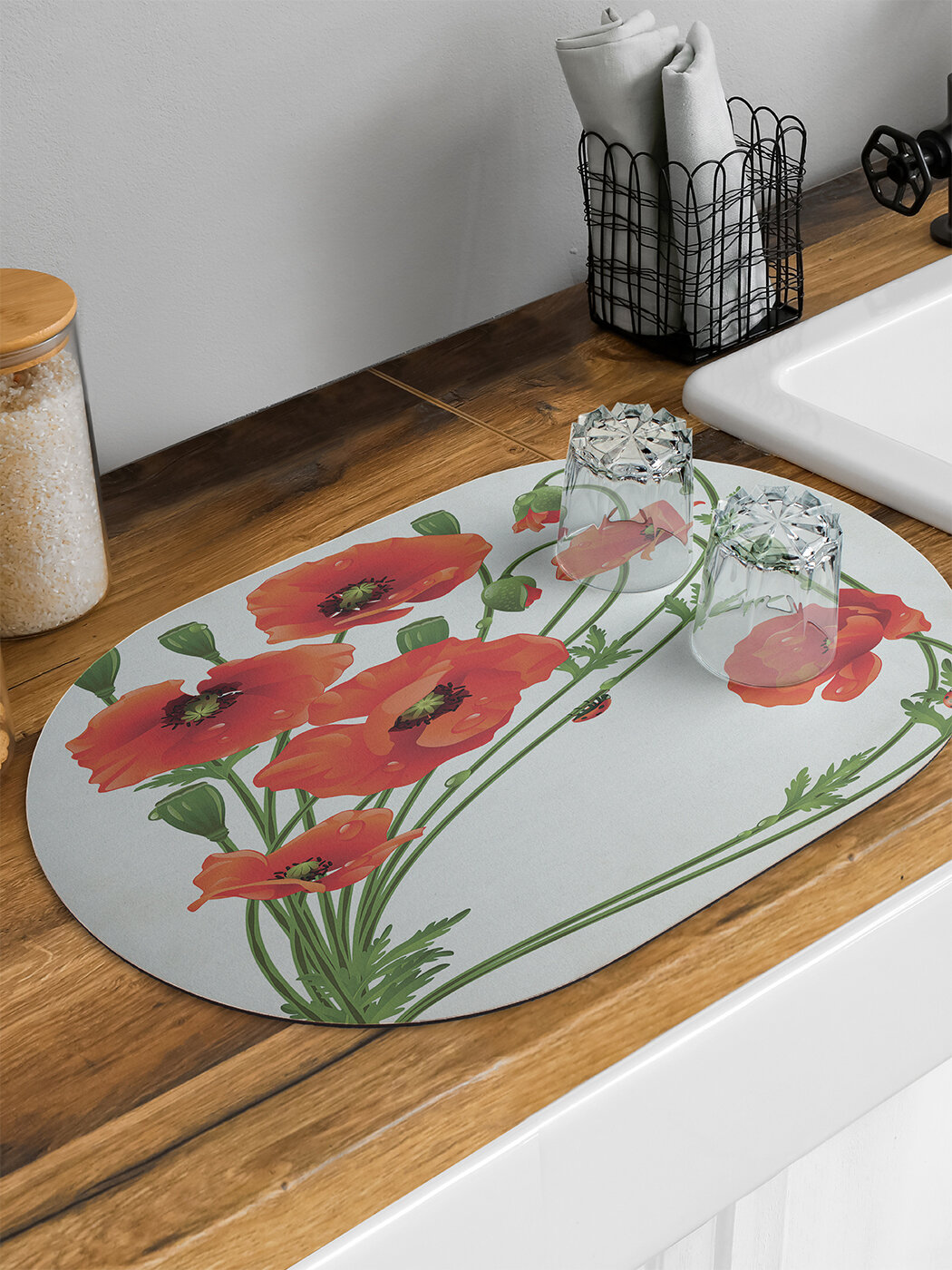Коврик для сушки посуды впитывающий для кухни JoyArty "Букет маков" овальный 58x38 см информация: