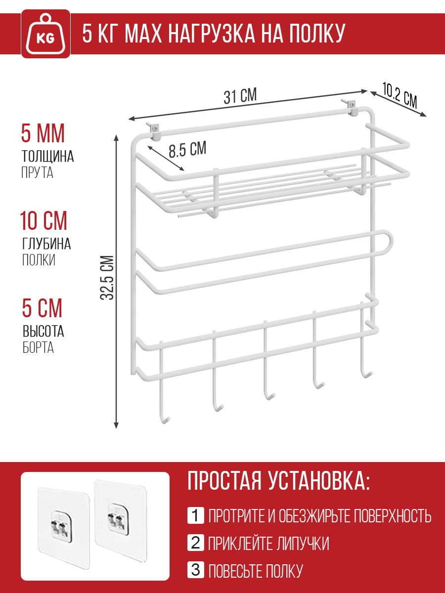 Органайзер кухонный НАЙДИ Держатель для бумажных полотенец. подвесной без сверления 310х102х325 мм. Белый матовый информация:
