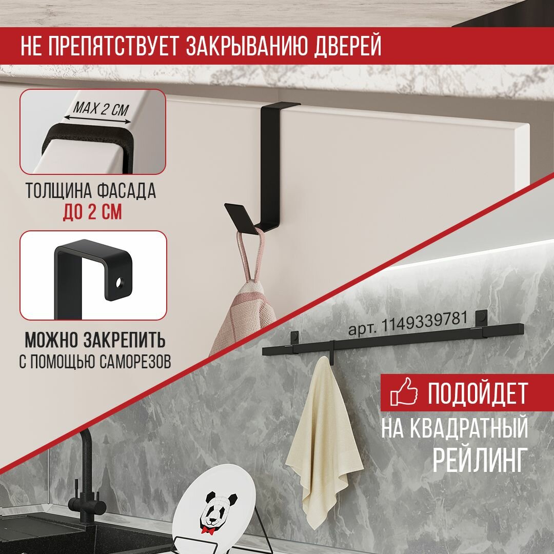 Крючок на рейлинг для принадлежностей, универсальный. Черный муар информация:
