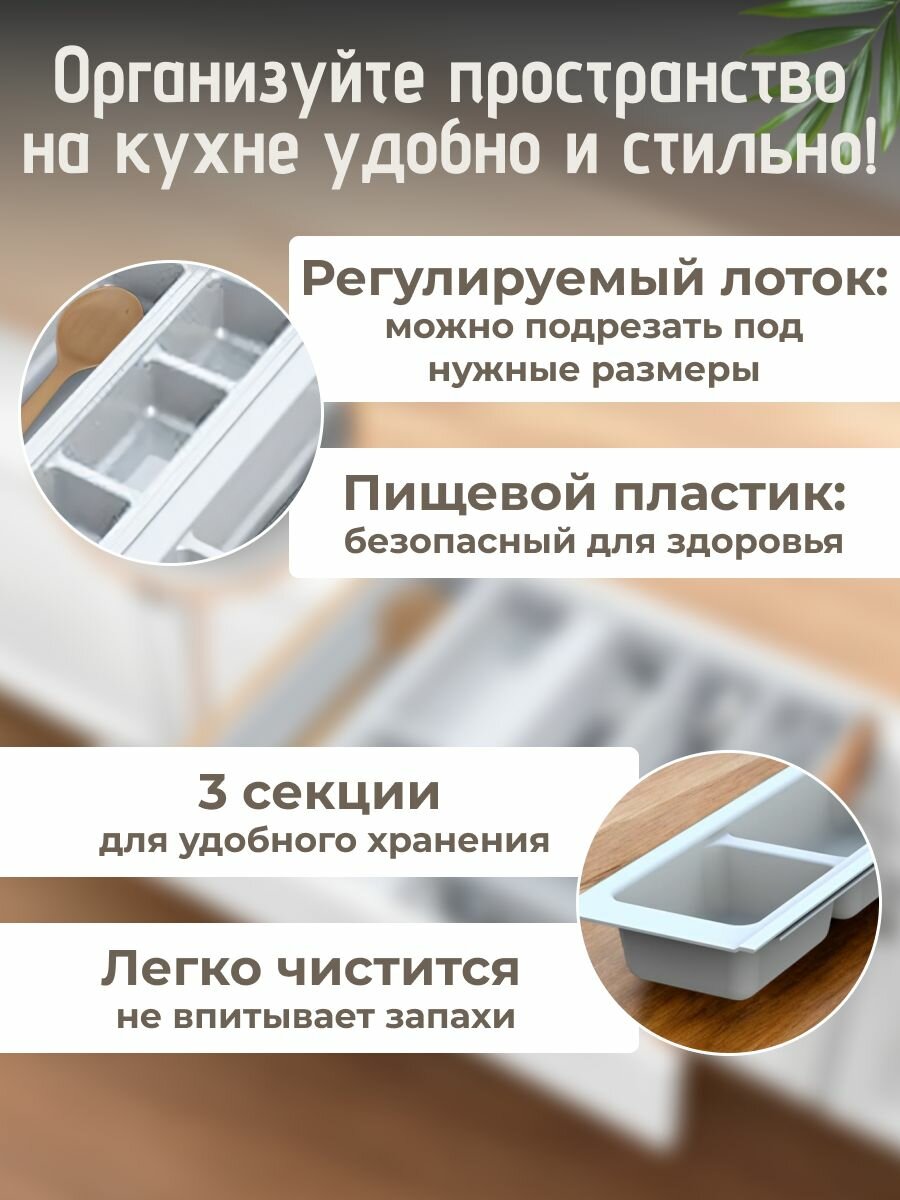 10 цен на Лоток для столовых приборов 107х480мм, 3 секции, белый