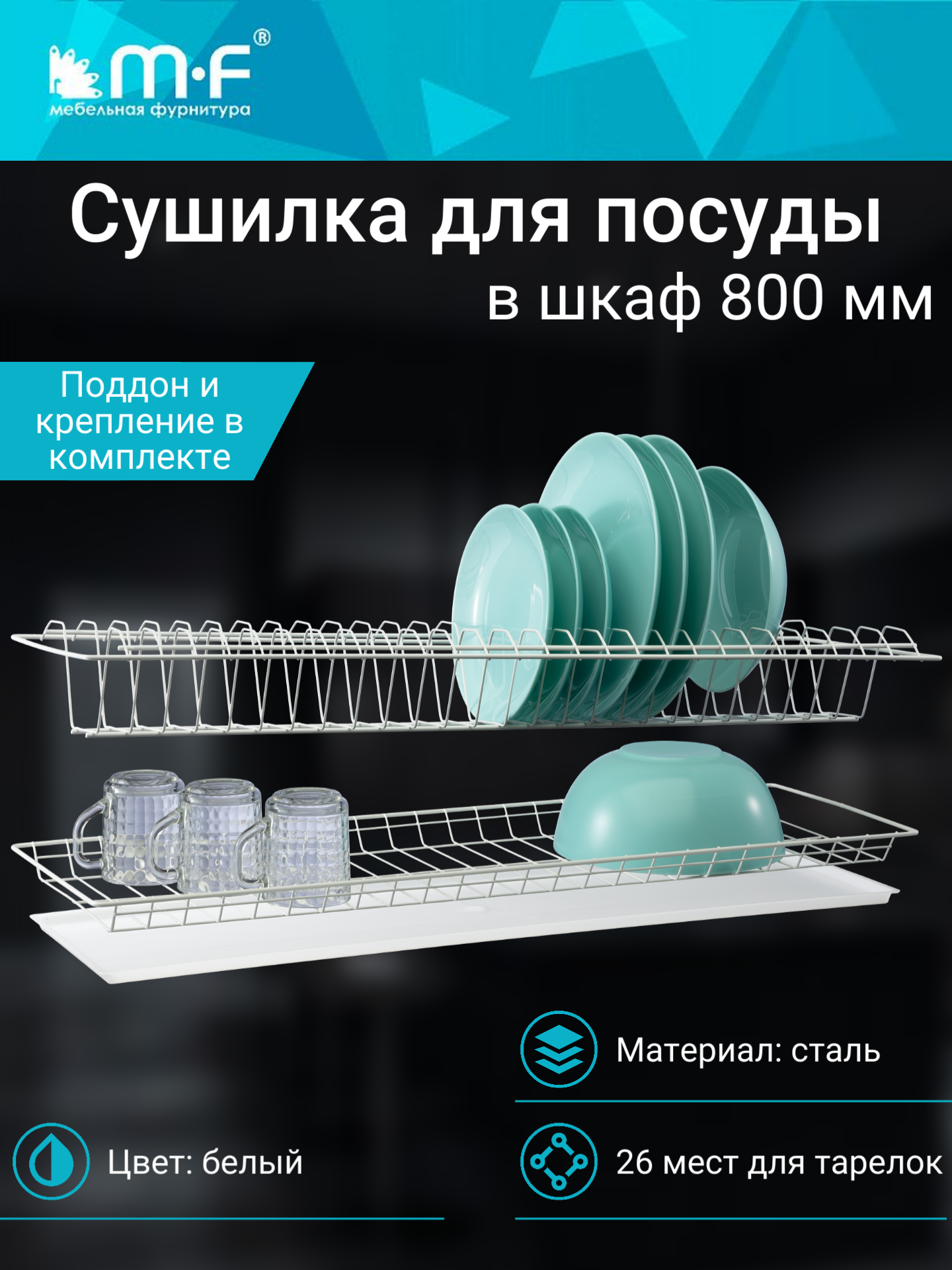 Сушилка для посуды с поддоном, в базу 800мм, белый (габариты 765х256) информация: