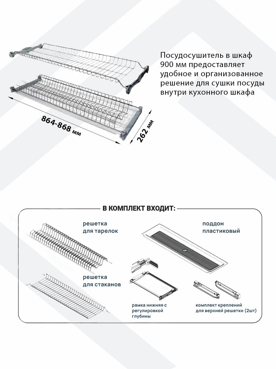 Сушилка для посуды в шкаф 90 см, серая, двухъярусная, с поддоном, сталь информация: