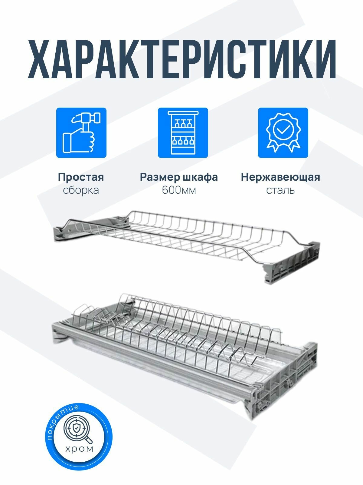 Сушилка двухуровневая для посуды в кухонный ящик 60 см, отделка сталь 1 шт. информация: