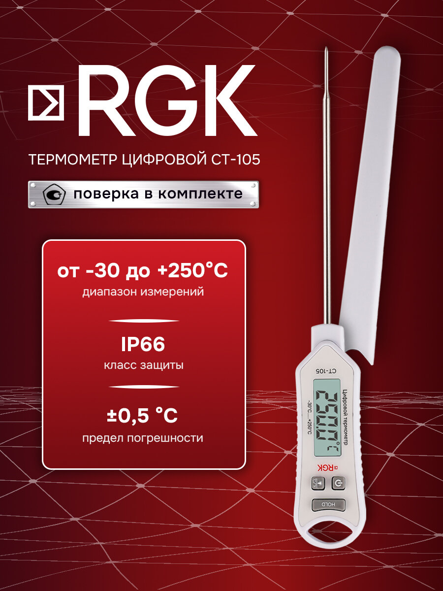 10 цен на RGK CT-105 контактный термометр с щупом, с поверкой, -30 С - +250 С