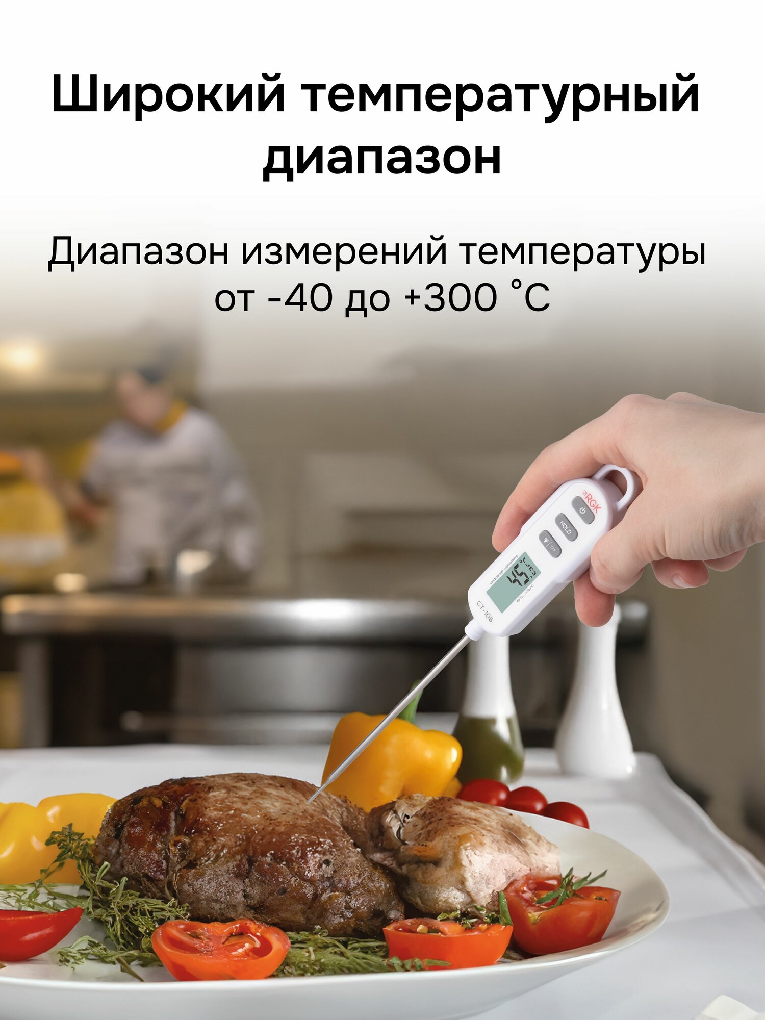 Кулинарный термометр электронный со щупом из нержавеющей стали, термометр для еды, мяса, вина, провод 1 метр / таймер кухонный