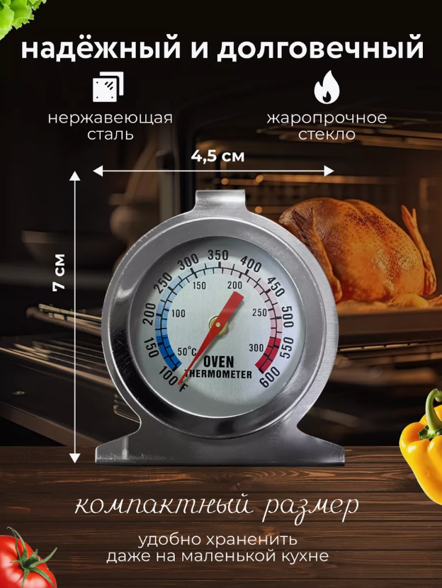 Отзывы на Термометр для духовки CARTE с двумя креплениями, цвет серебристый