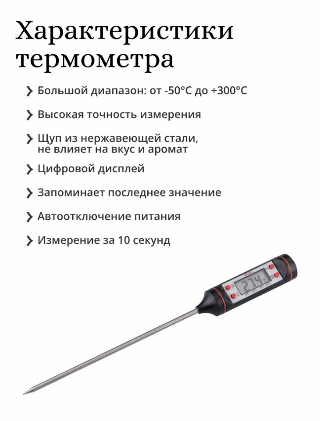 Термощуп TP-101 для кухни, Термометр кулинарный цифровой с щупом TP-101, чёрный, термощуп кухонный информация: