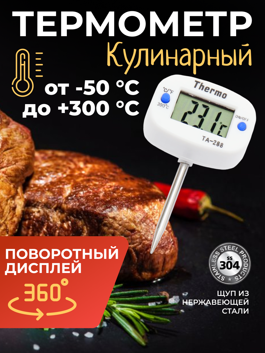 Отзывы на Термометр цифровой с коротким щупом (4 см) и поворотным дисплеем TA-288