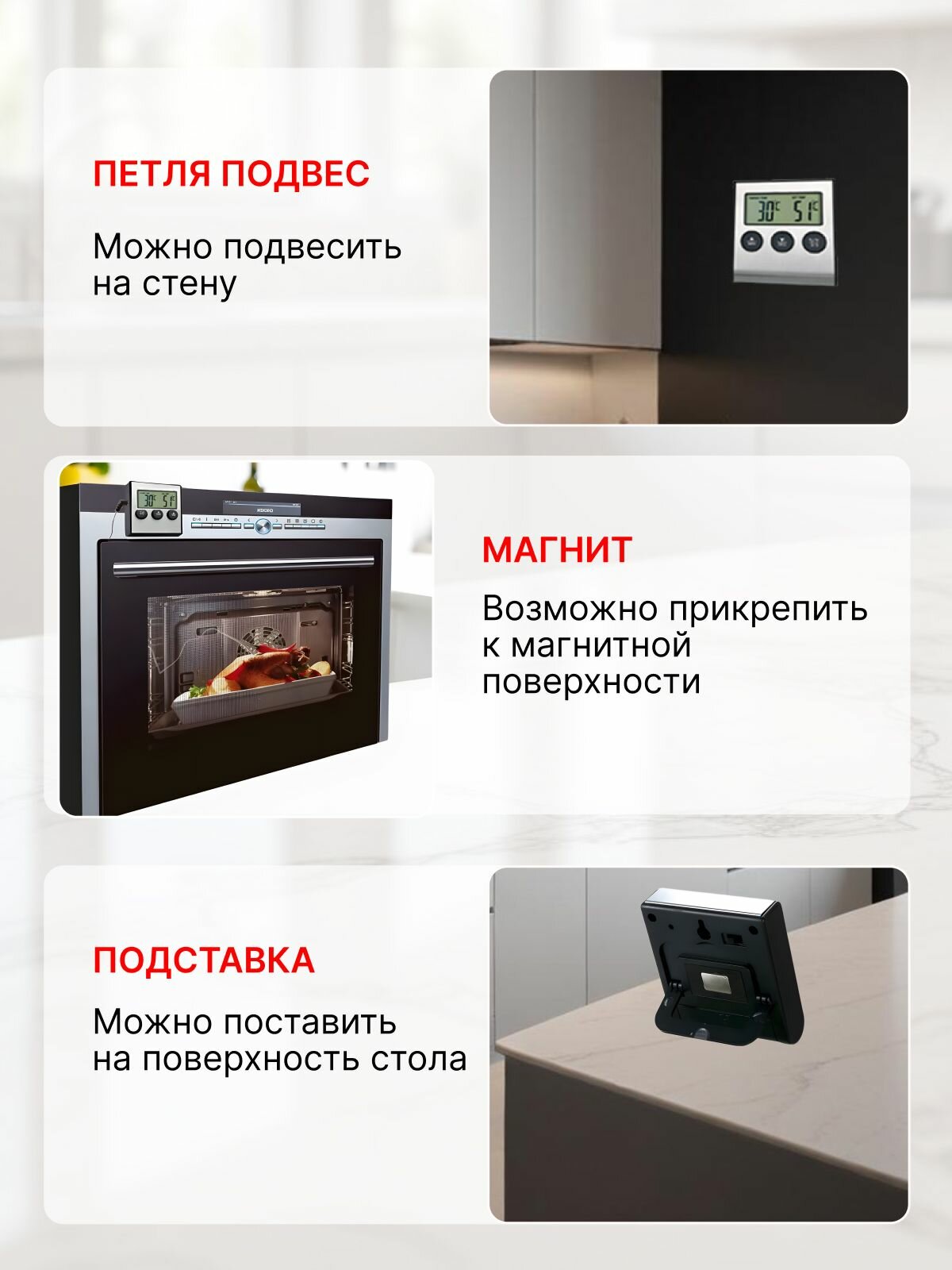 Кулинарный термометр электронный со щупом из нержавеющей стали, термометр для еды, мяса, вина, провод 1 метр / таймер кухонный