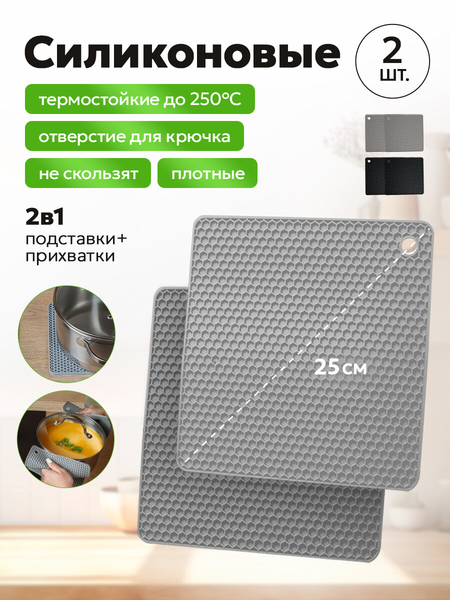 Прихватки кухонные Karpee Home, силиконовые, гибкие, термостойкие, 14 см, 2 шт, серые информация: