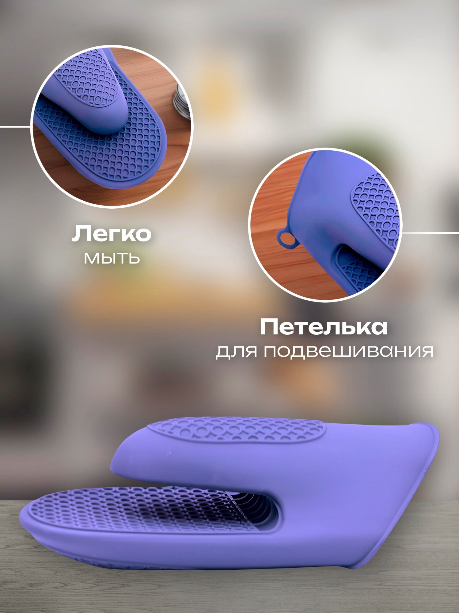 Отзывы на Набор силиконовых прихваток, термостойкие, противоскользящие, для кухни, 2 шт, фиолетовые