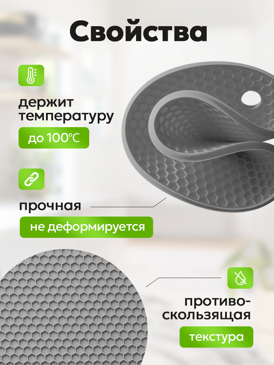 Силиконовые прихватки подставка под горячее квадратные серые набор 2 шт информация: