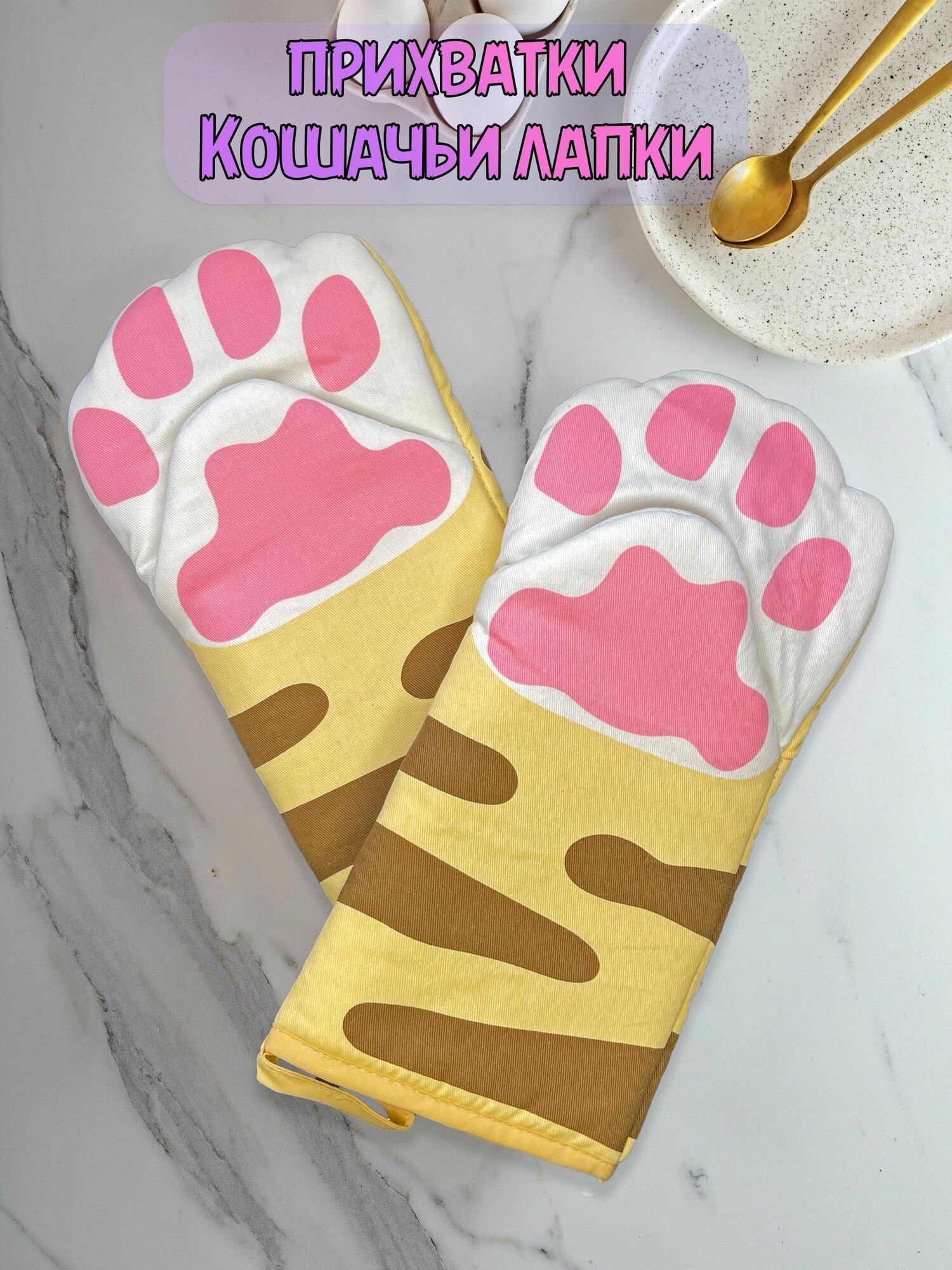 Прихватки-рукавички "Кошачьи лапки" коричневые с белым 2 шт. информация: