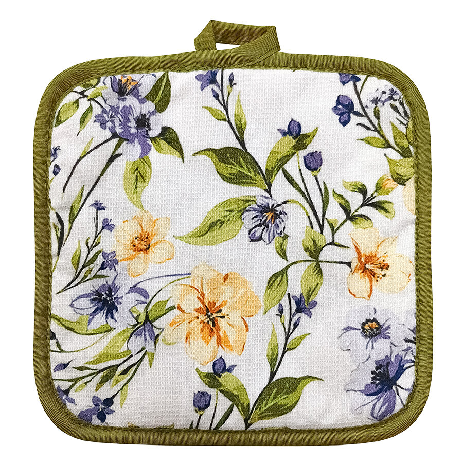 10 цен на Набор кухонный BRAVO Цветы/ подарочный набор /прихватка 17х17 см, прихватка-рукавица 18х26 см, полотенце 35х60 см/