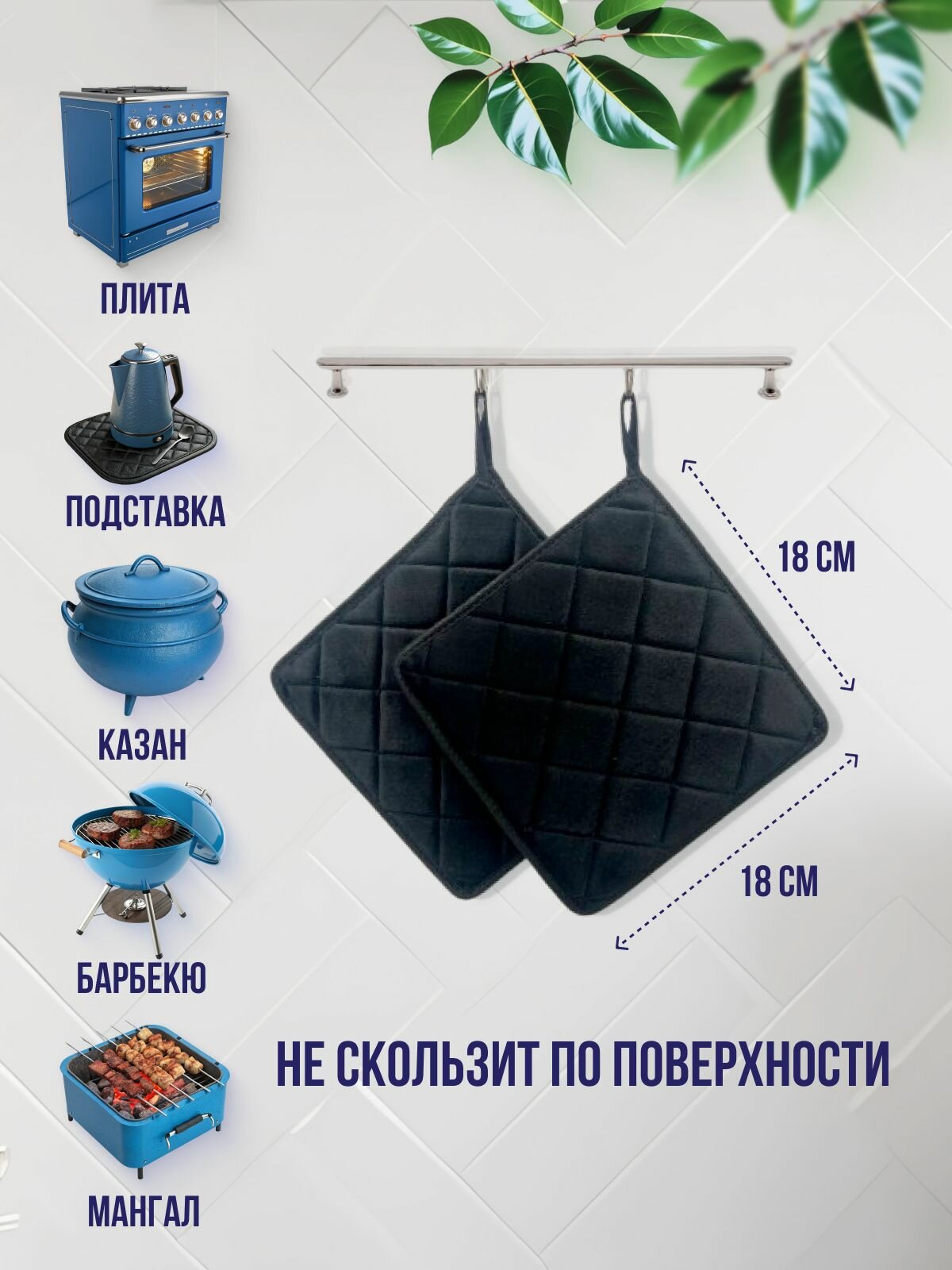 Набор универсальных черных прихваток на кухню информация: