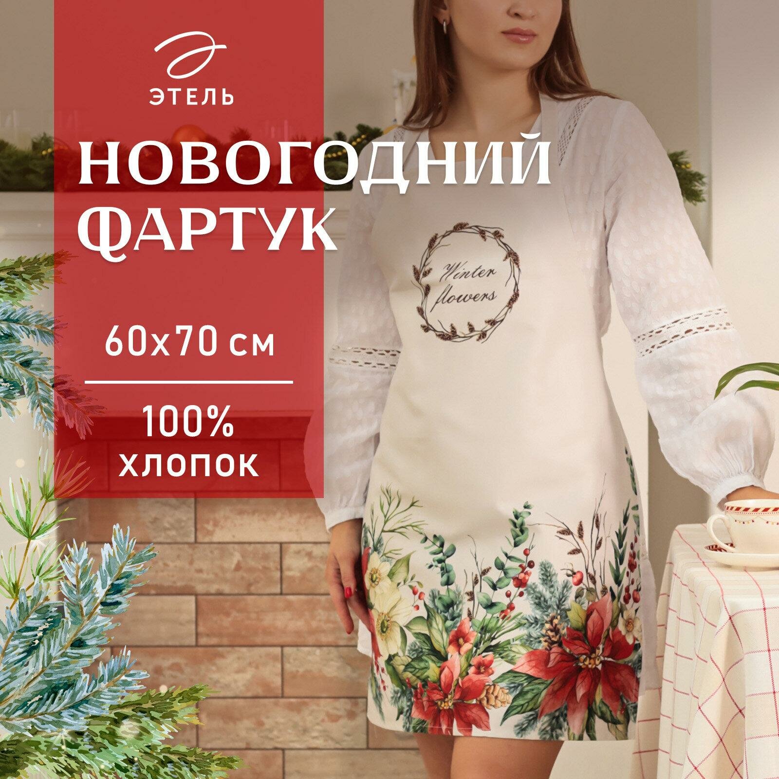 10 цен на Фартук кухонный женский Этель "Пуансетия" 60х70 см, 100% хлопок, саржа 190 г/м2