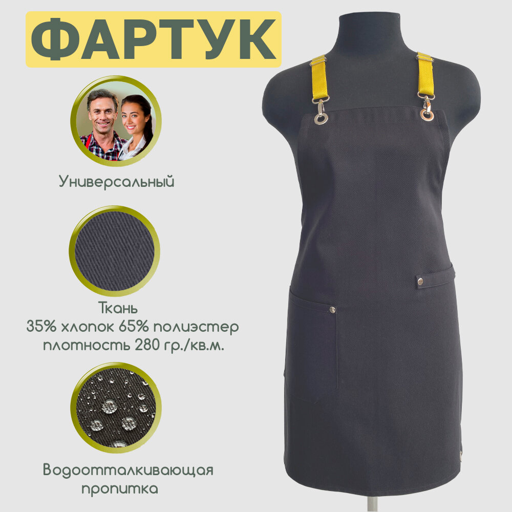 Фартук рабочий универсальный с водоотталкивающей пропиткой, цвет Чёрный с Жёлтыми бретельками. информация: