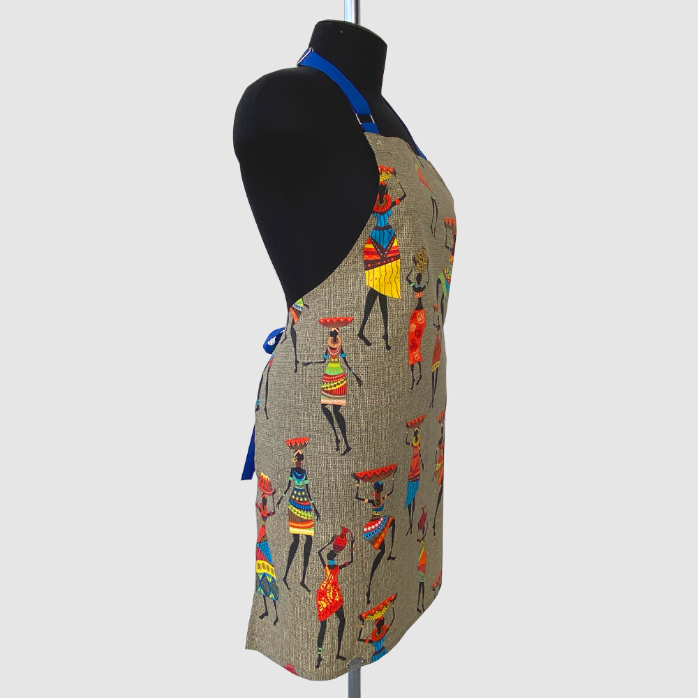 Отзывы на Фартук кухонный женский "Африканские мотивы", цвет Хаки с Синими бретельками.