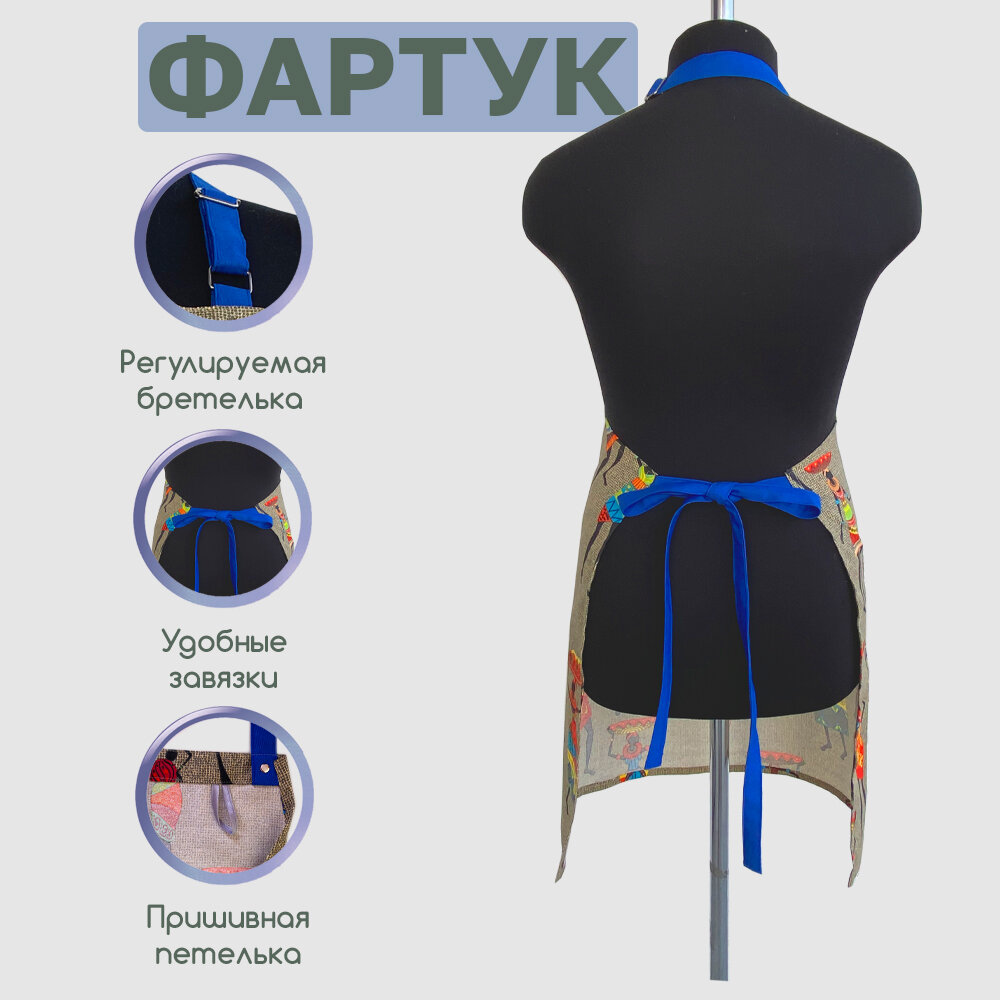 10 цен на Фартук кухонный женский "Африканские мотивы", цвет Хаки с Синими бретельками.