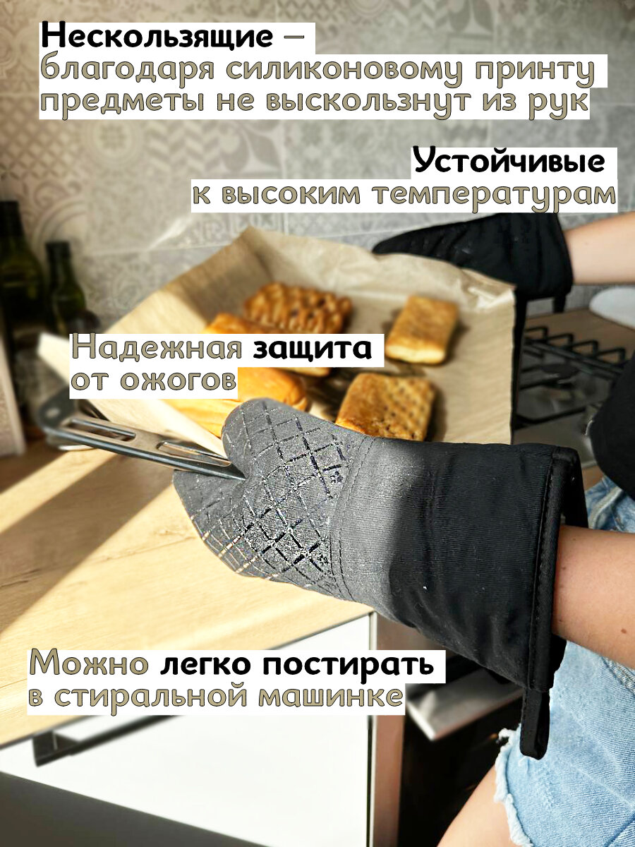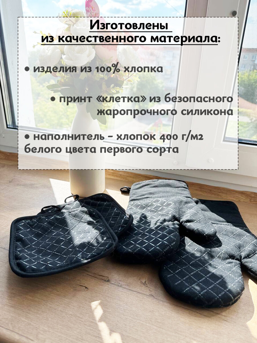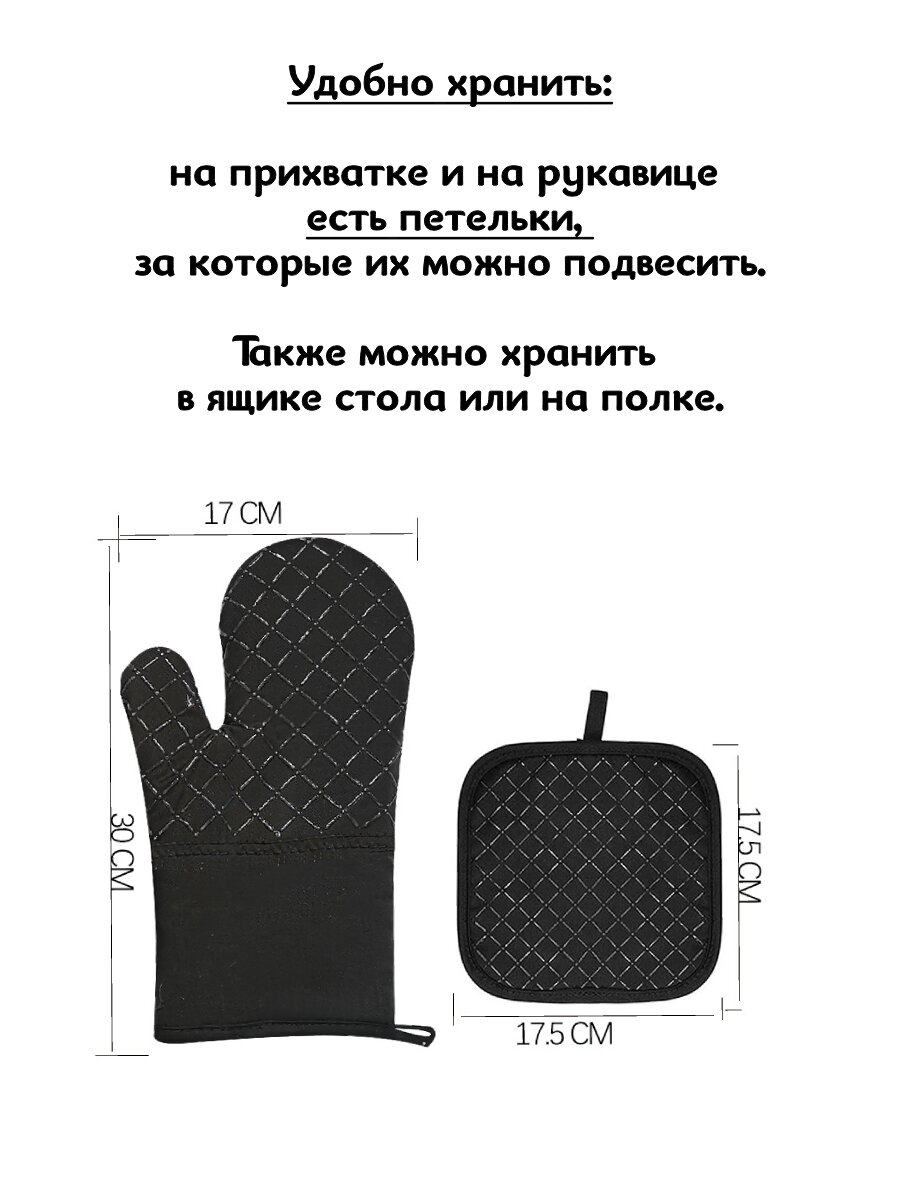 Прихватки и рукавицы кухонные черные с силиконовым принтом информация: