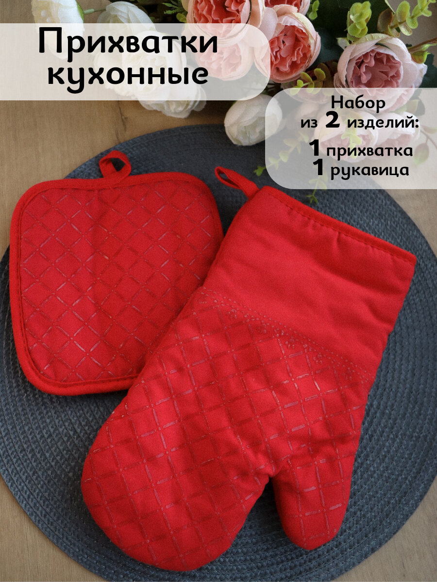 10 цен на Прихватка и рукавица кухонные красные с силиконовым принтом