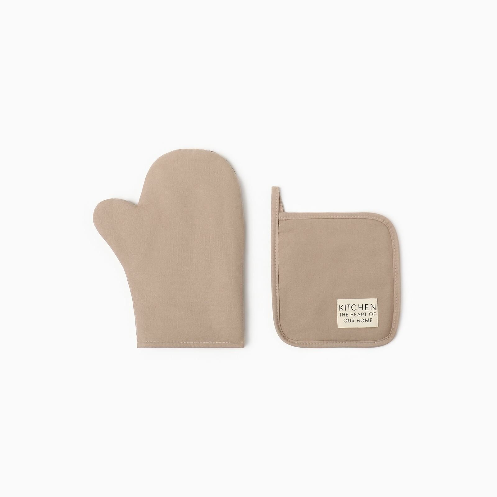 Набор кухонный Этель Kitchen, цвет бежевый, варежка-прихватка 18х29 см, прихватка 19х19 см информация: