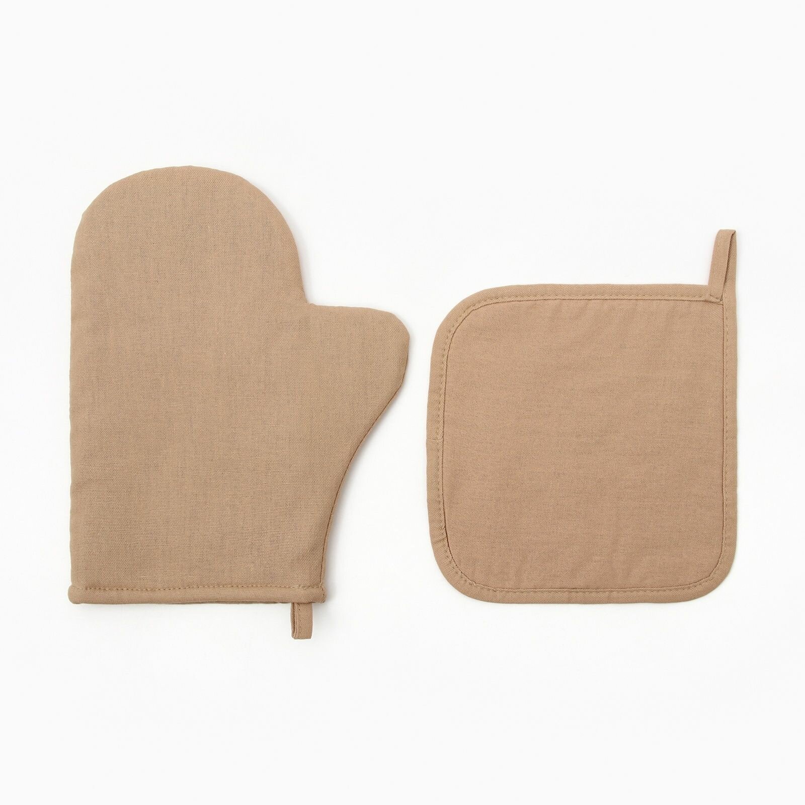 Набор кухонный Этель Kitchen, цвет бежевый, варежка-прихватка 18х29 см, прихватка 19х19 см