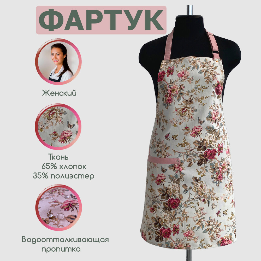 Отзывы на Фартук кухонный, поварской, с водоотталкивающей пропиткой, принт "Роза Флорентина"