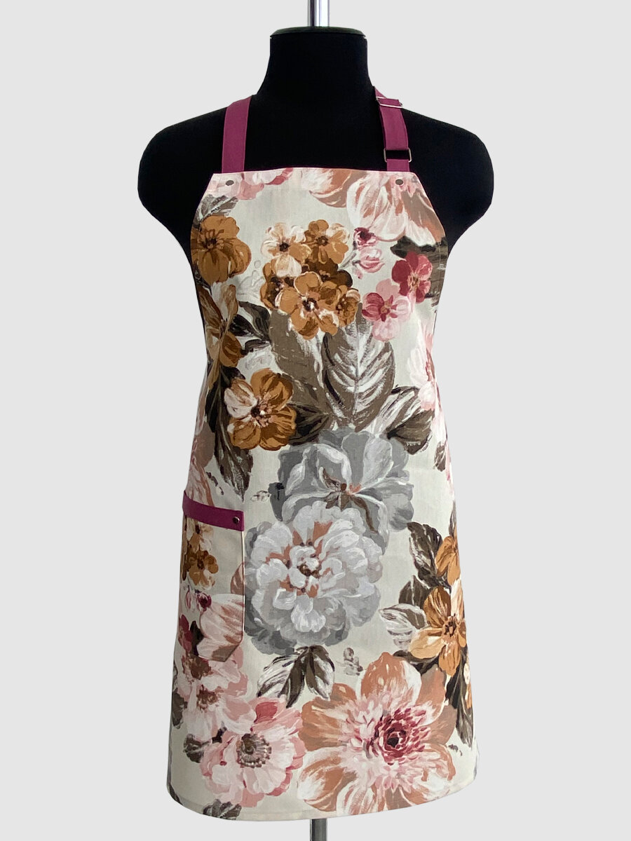 Отзывы на Фартук женский с водоотталкивающей пропиткой, принт "Астория-Пионы" с бретельками и завязками цвета фламинго.