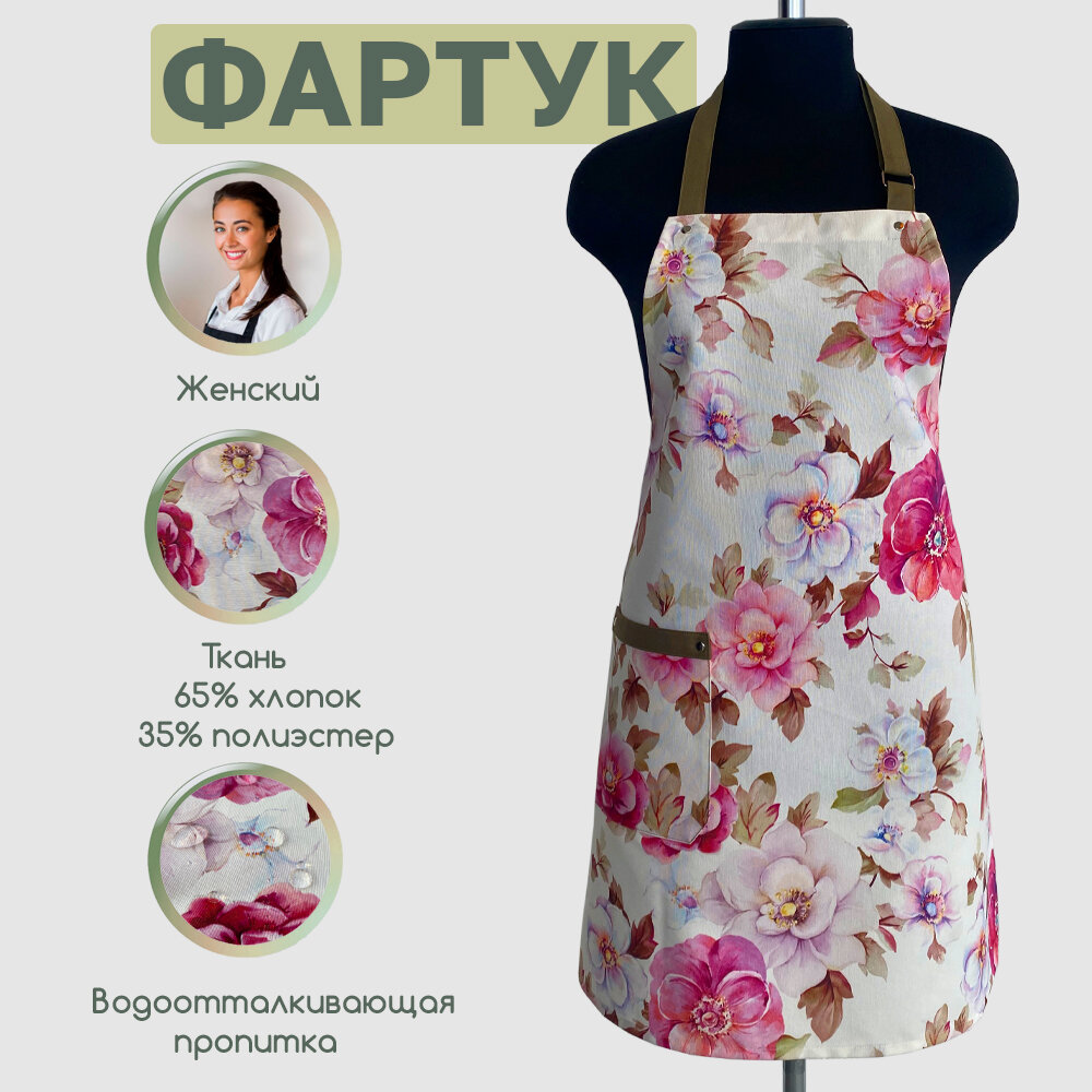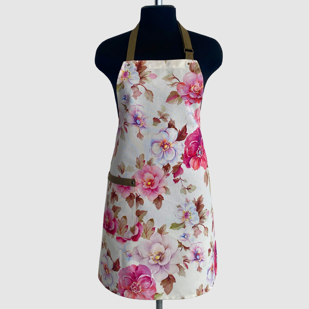 10 цен на Фартук кухонный, поварской, с водоотталкивающей пропиткой, принт "Роза Касабланка" с бретельками и поясом цвета хаки.
