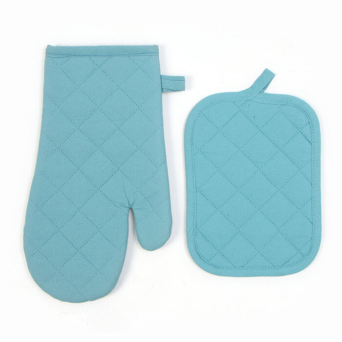 10 цен на Набор кухонный Этель, цв. бирюза: варежка-прихватка 18х30 см, прихватка 18х21 см