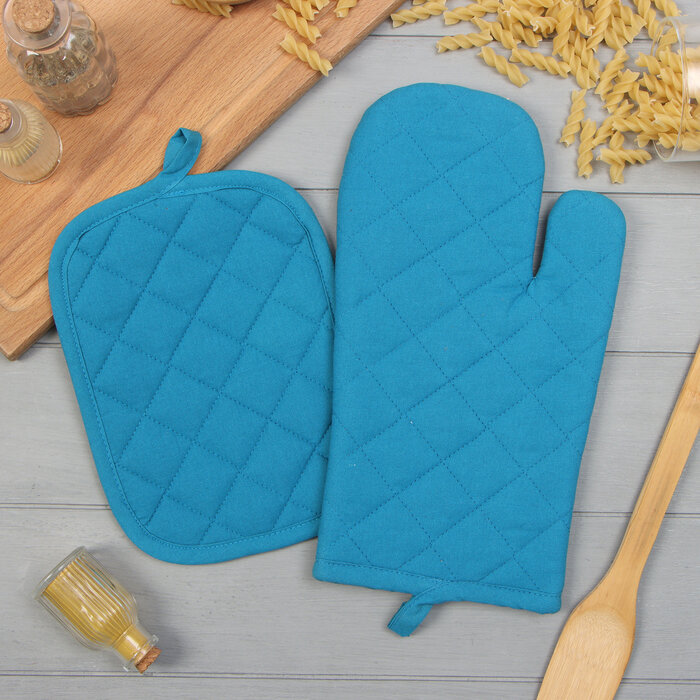 10 цен на Набор кухонный Этель, цв. синий: варежка-прихватка 18х26 см, прихватка 18х21 см