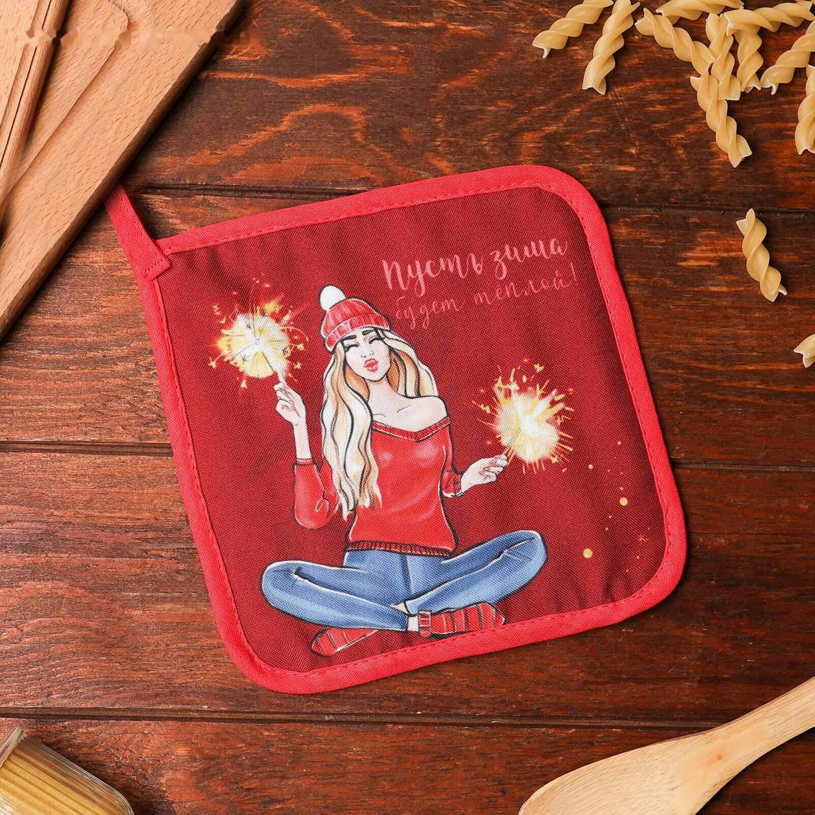 10 цен на Прихватка Доляна "Пусть зима будет теплой" 17х17см, 35% хл,65% п/э