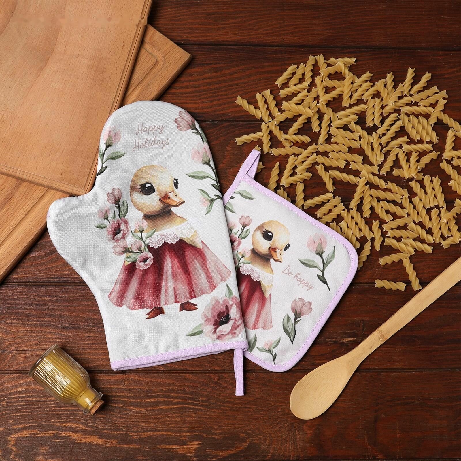 Набор кухонный Доляна "Уточка": варежка 20х28 см, прихватка 17х17 см, 35% хлопок, 65% п/э, 9927484 334 ₽