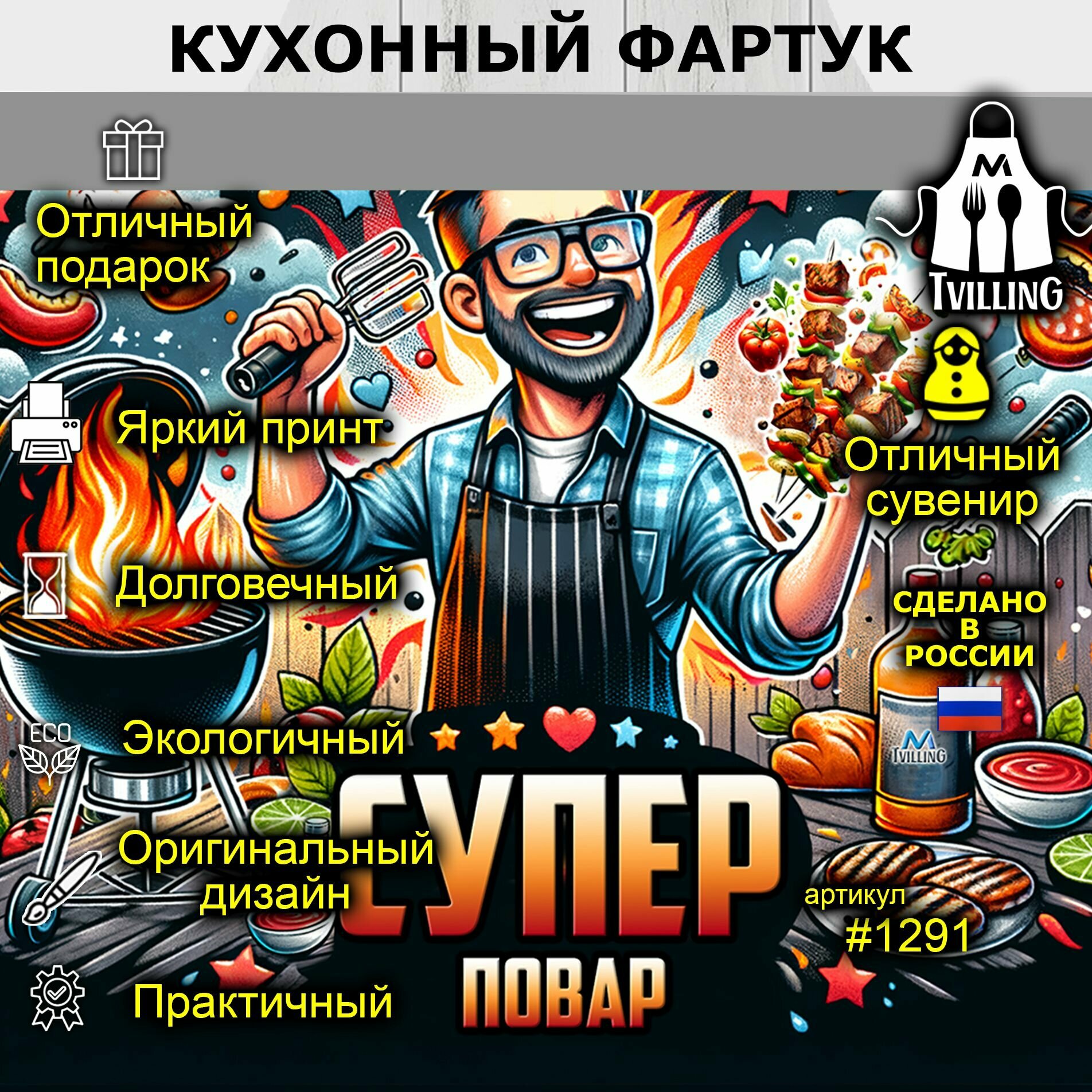 Отзывы на Фартук кухонный "Шашлычный король" Супер Повар - подарок мужчине